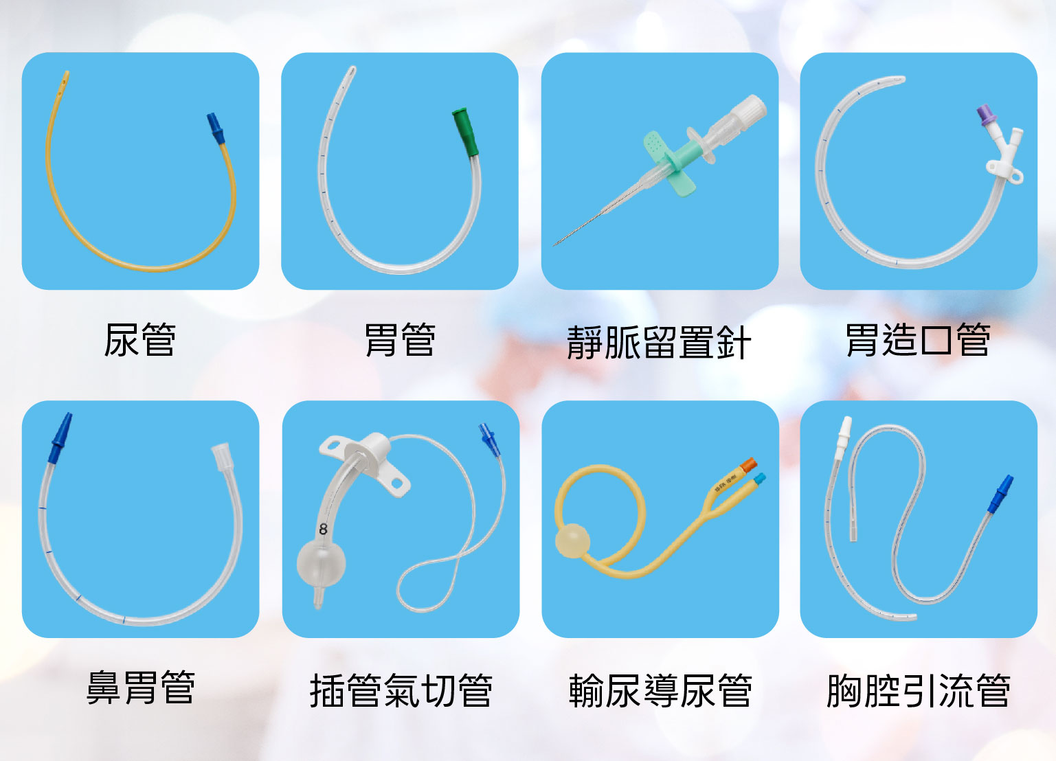 ➎ 鼻胃管 ➏ 插管氣切管 ➐ 輸尿導尿管 ➑ 胸腔引流管